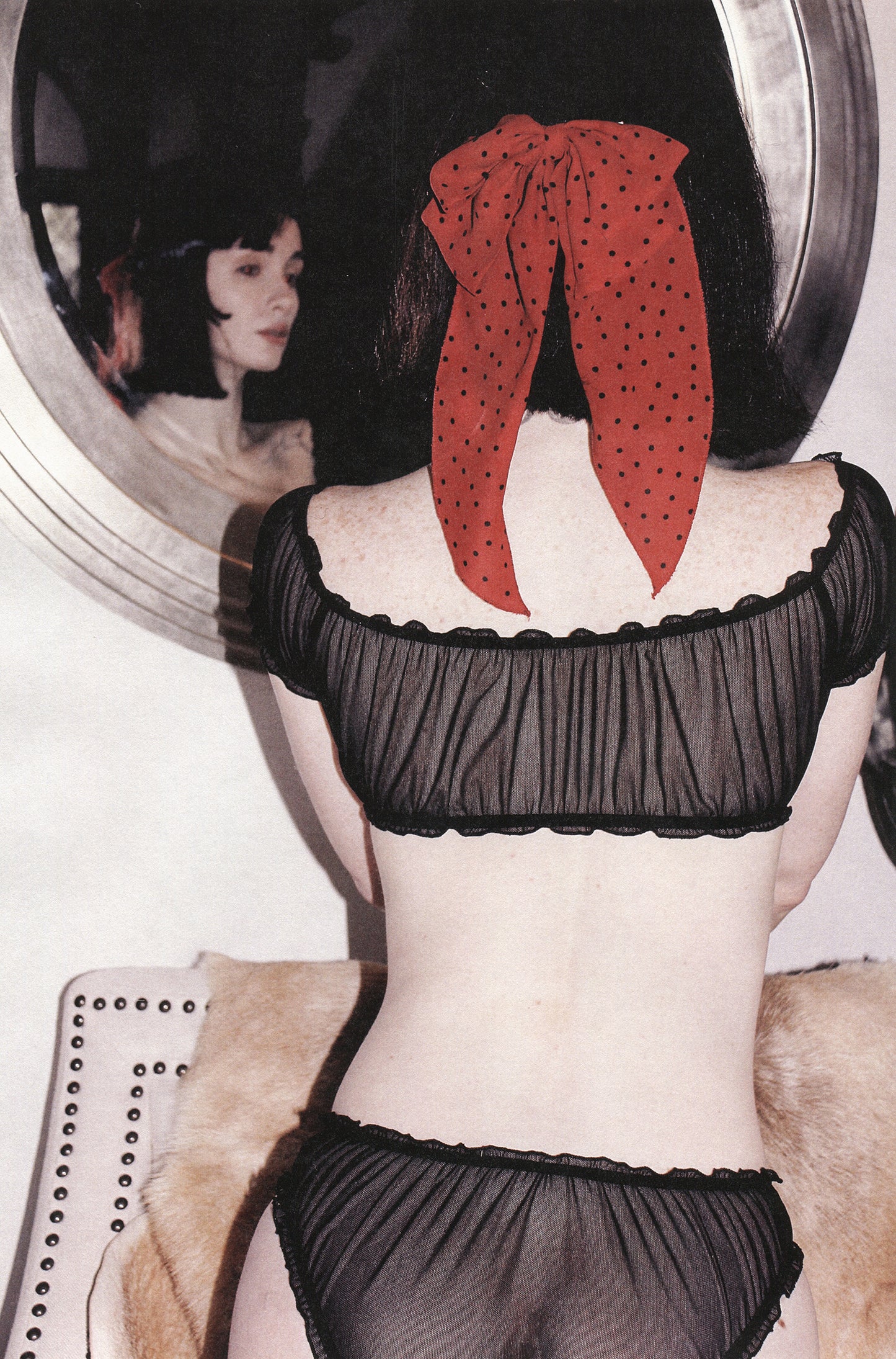 A soft and gentle mesh off the shoulder top, gathered with stretchy plush back elastic. Perfect for bedtime, or layered with other pieces for daytime outfits.