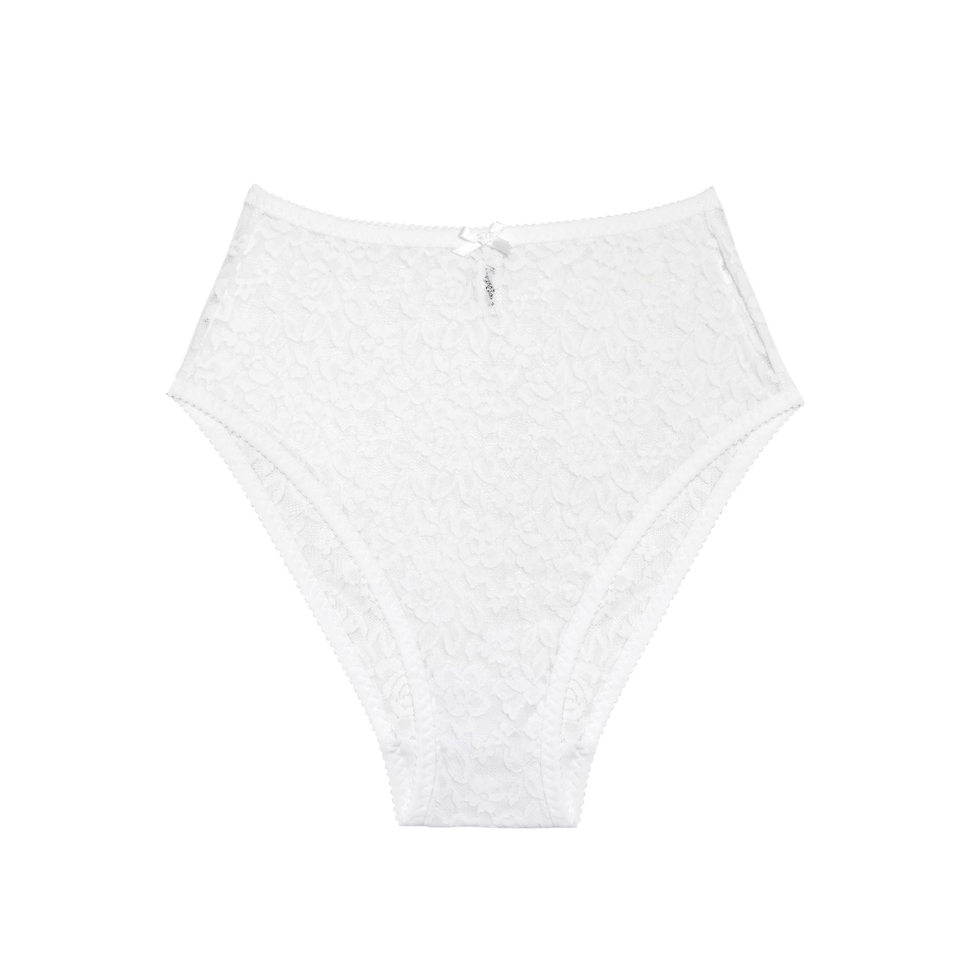 The perfect full briefs in the softest white lace. Cut high on the waist and with classic bikini cut legs, and trimmed with gentle elastic that won't cut in.
