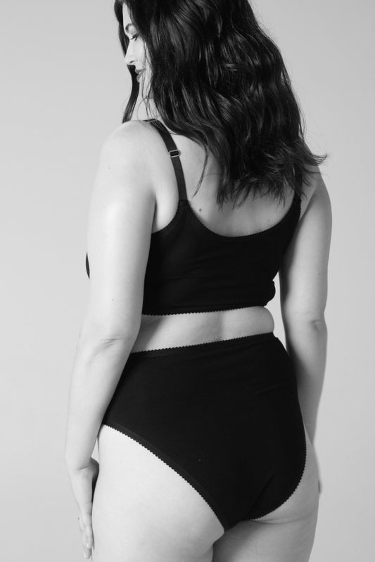 The most comfortable sheer knickers inspired by 1990s lingerie shapes. Cut with a mid rise waist and high cut legs, and trimmed in our signature picot elastic.