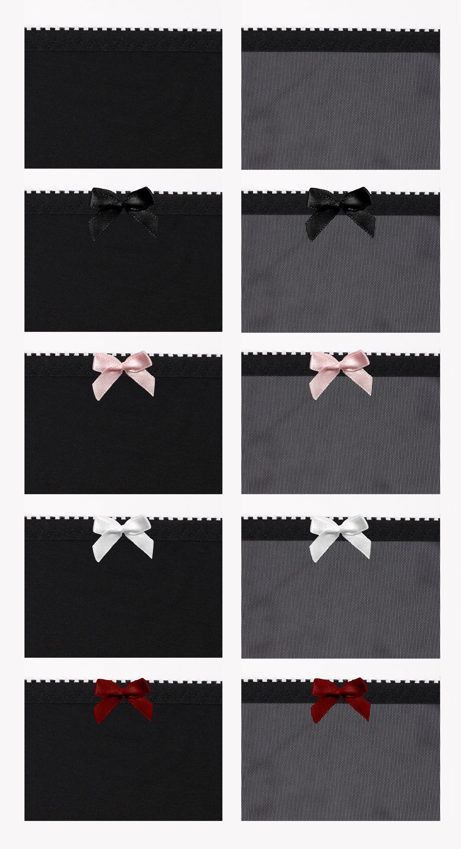 A vintage inspired bodysuit in soft and stretchy sheer mesh with romantic flounces along the leg lines. Trimmed with gentle elastic, fully adjustable straps and with optional bows.