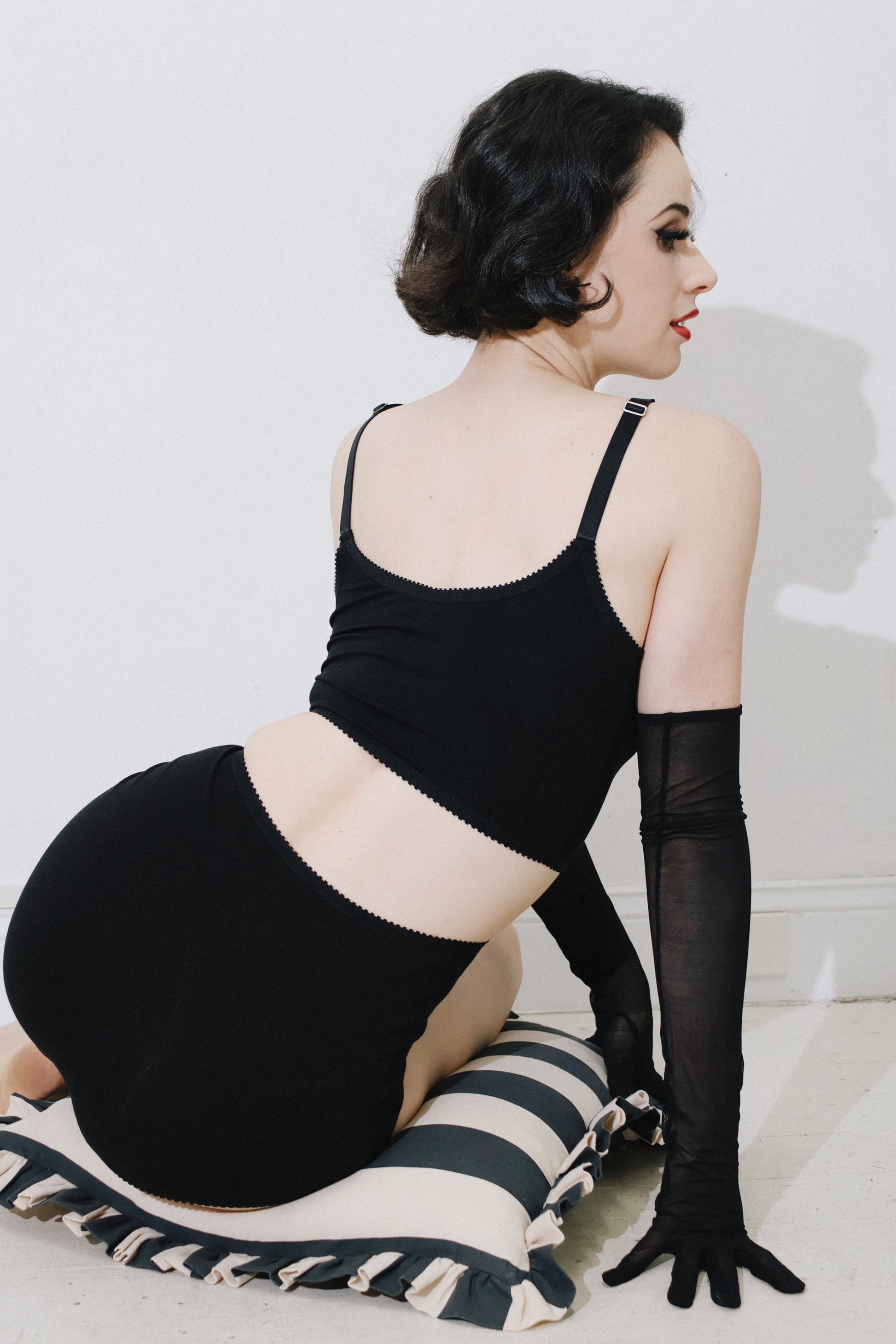 A vintage inspired full brief with a high cut waist and low leg lines, in soft and stretchy modal jersey. Trimmed with our signature gentle elastic and an optional bow.