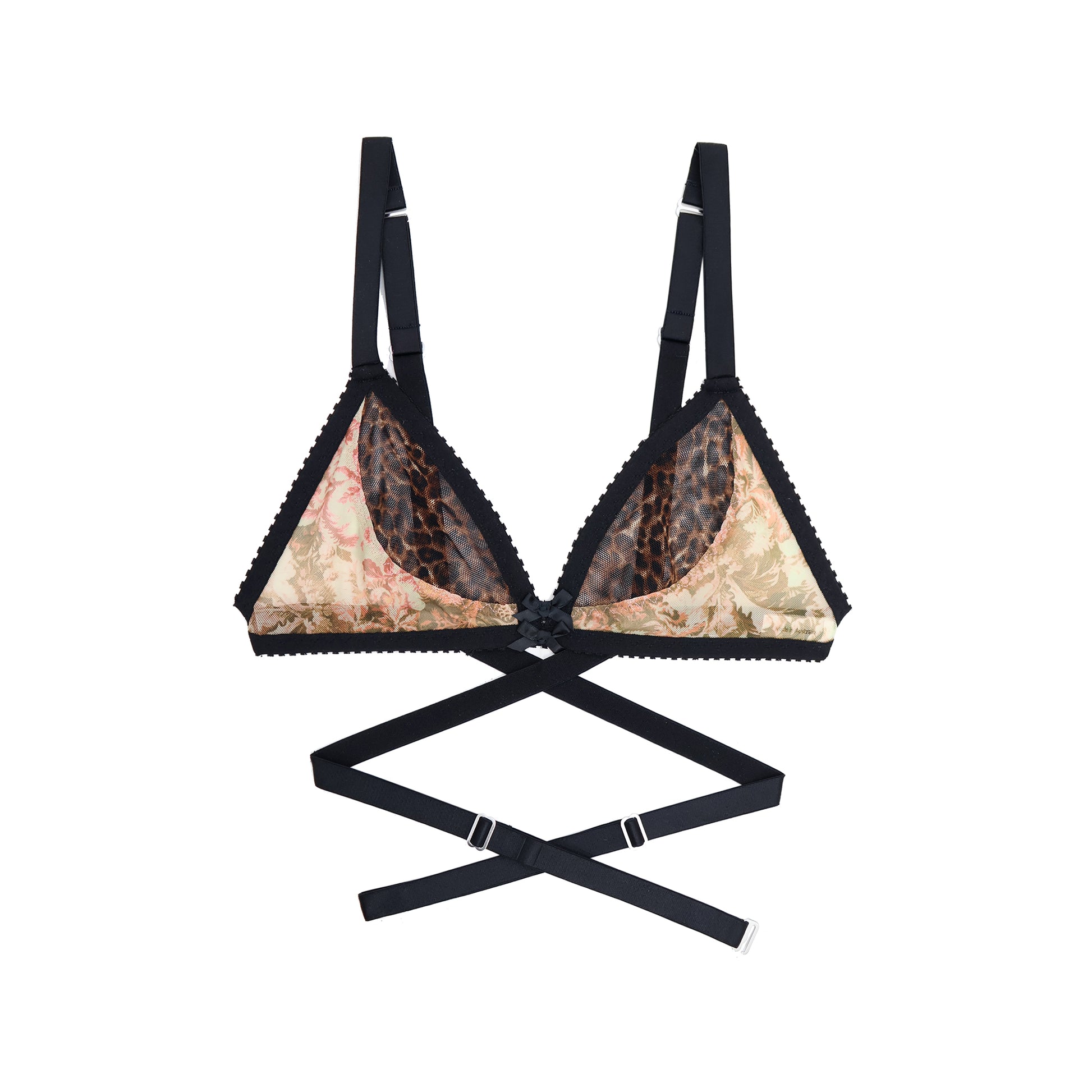 An easy to wear bralette in vintage leopard and stretchy yellow mesh. Trimmed with our signature gentle elastic and adjustable satin straps for a flexible fit.