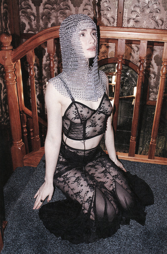 A new edition of our Mary Celeste Cami, a dark and romantic lace bralette top crafted from soft floral mesh. This signature Hopeless design features adjustable straps, a romantic flounce and a delicate bow. Made for relaxing, this lightweight piece is ideal for bedtime.